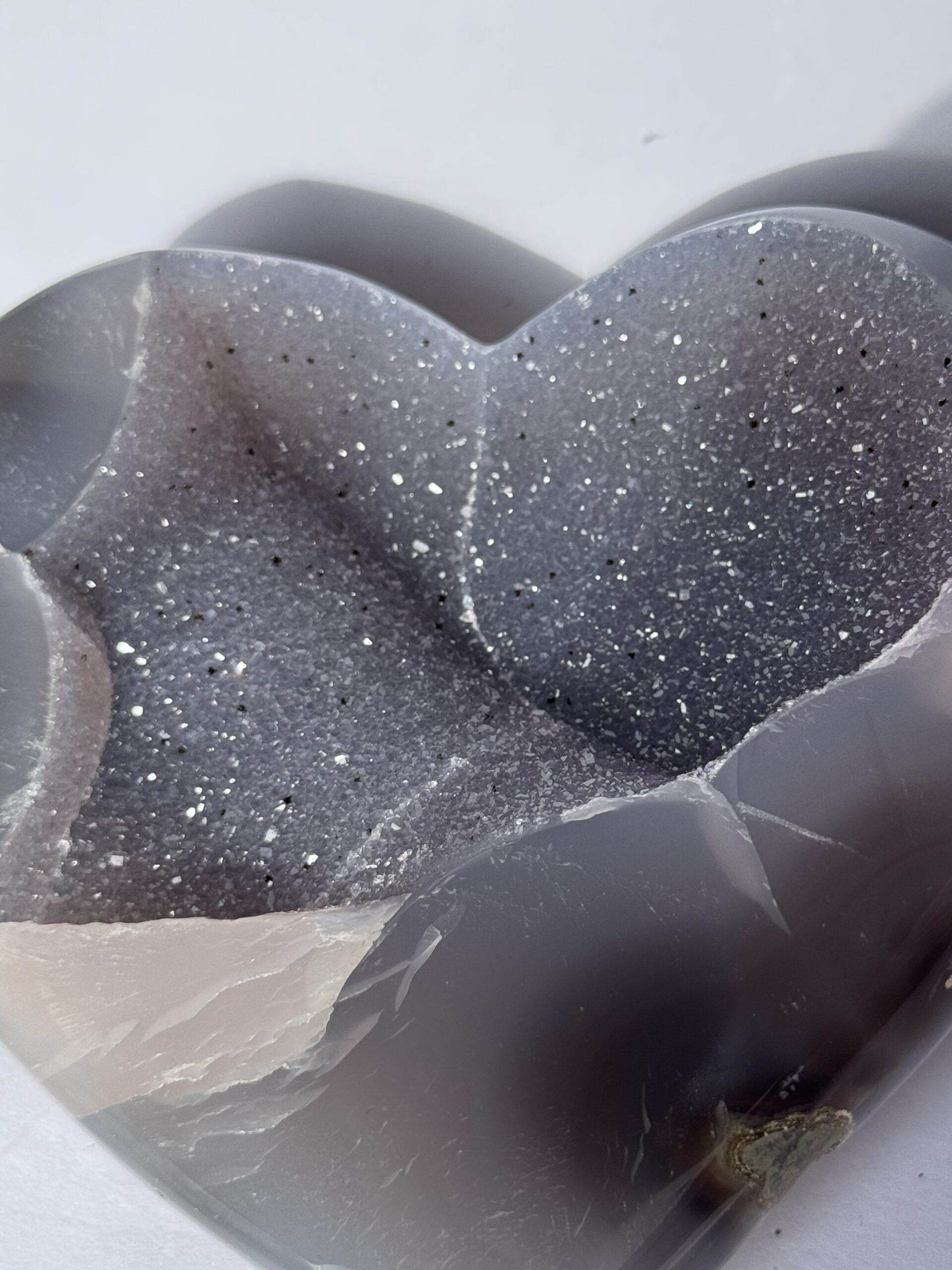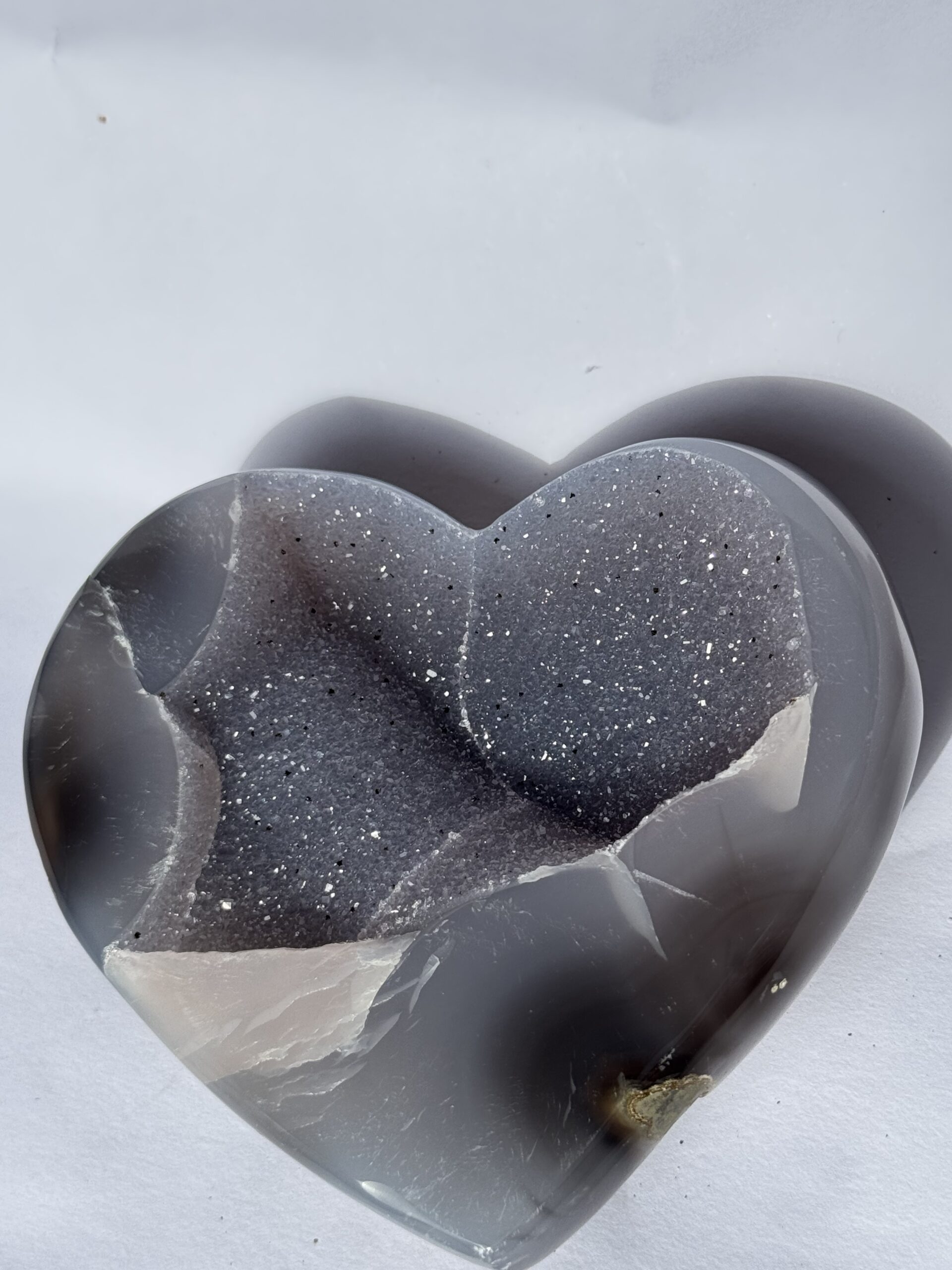 Un corazón que combina elegancia y energía. Sus vetas naturales y delicados destellos hacen de cada pieza algo único, perfecto para iluminar tu espacio